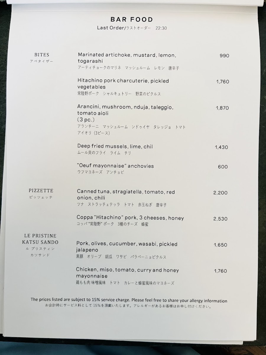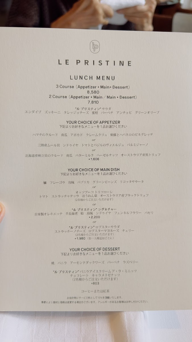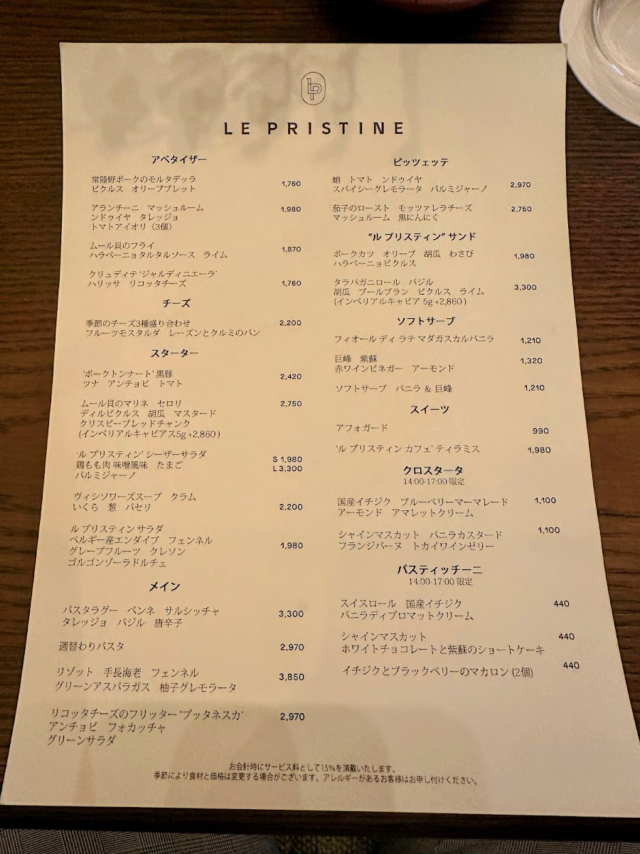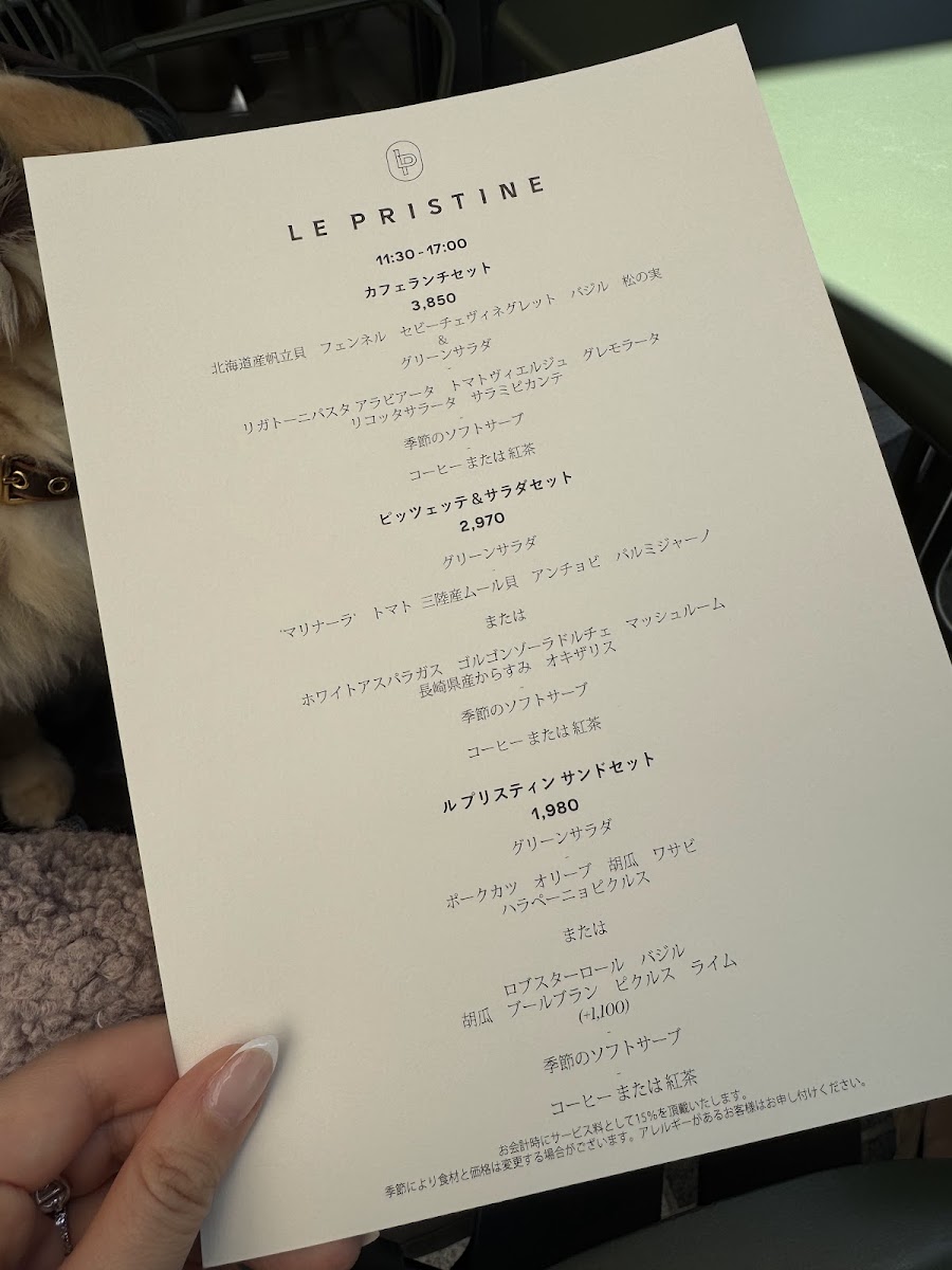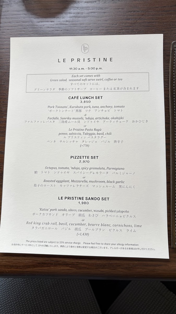 Le Pristine Café Tokyo Menu