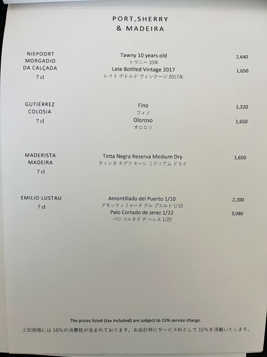 ※表示価格には10%の消費税が含まれております。お会計時にサービス料として15%を頂戴いたします。